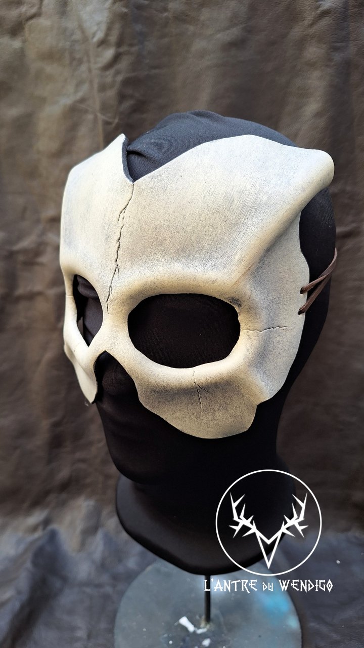 Ce demi-masque crâne en cuir est un accessoire de caractère, destiné à renforcer l’identité visuelle de personnages liés à la mort, à la guerre ou aux cultes anciens.